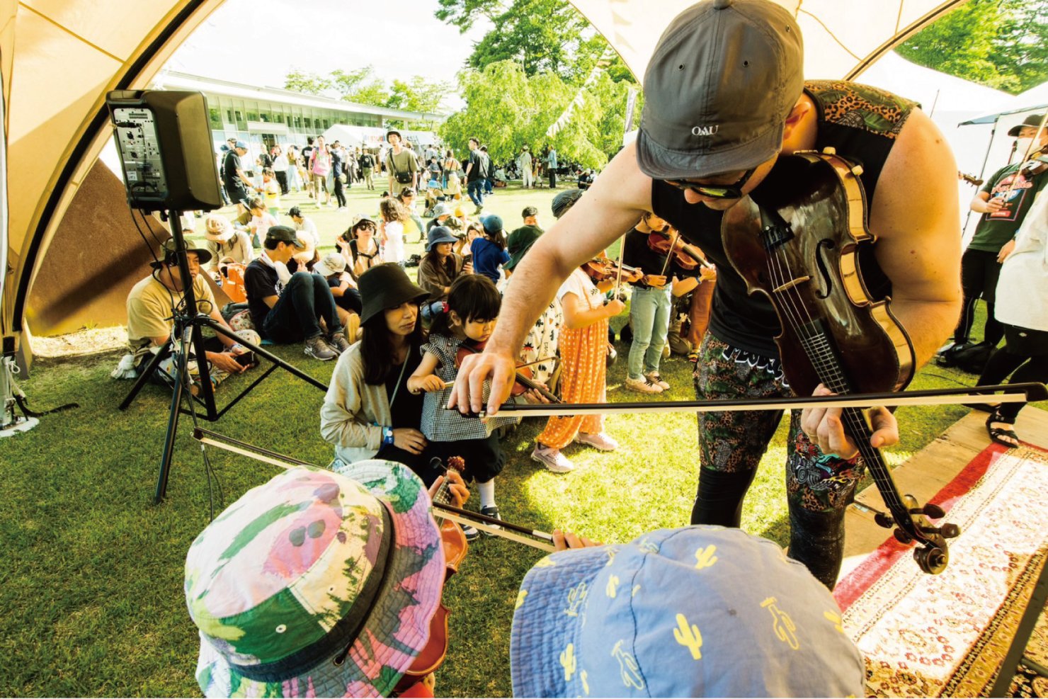 自然あふれるアコチル会場の青空の下、マーティンと一緒にバイオリン体験をしてみませんか!