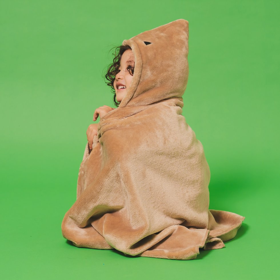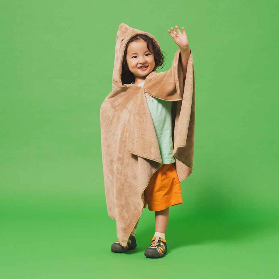 フード付きですっぽり体を覆えるため動き回る子供の体を拭きやすい!