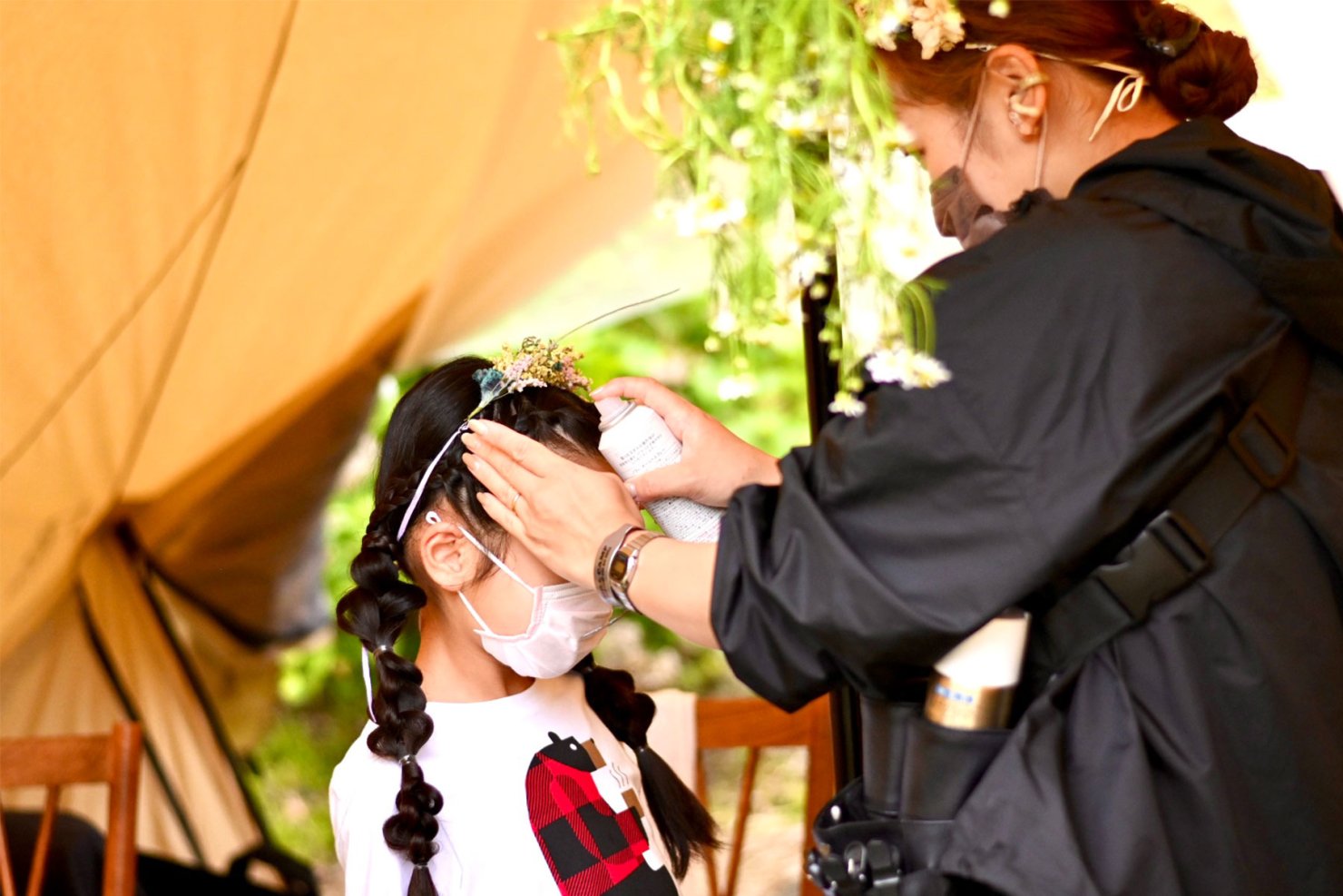 ドライフラワー作家の作るの1点もののオリジナル花飾りと、ベテランヘアメイクスタッフによる本格的なヘアアレンジとの組み合わせで作る唯一無二のヘアスタイルを提供します。