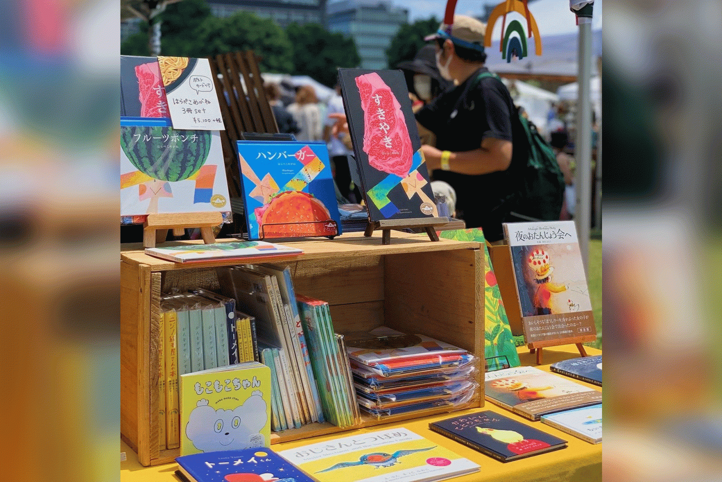 絵本のお買いものもできるので、テントや車で絵本を読むのもおすすめです。